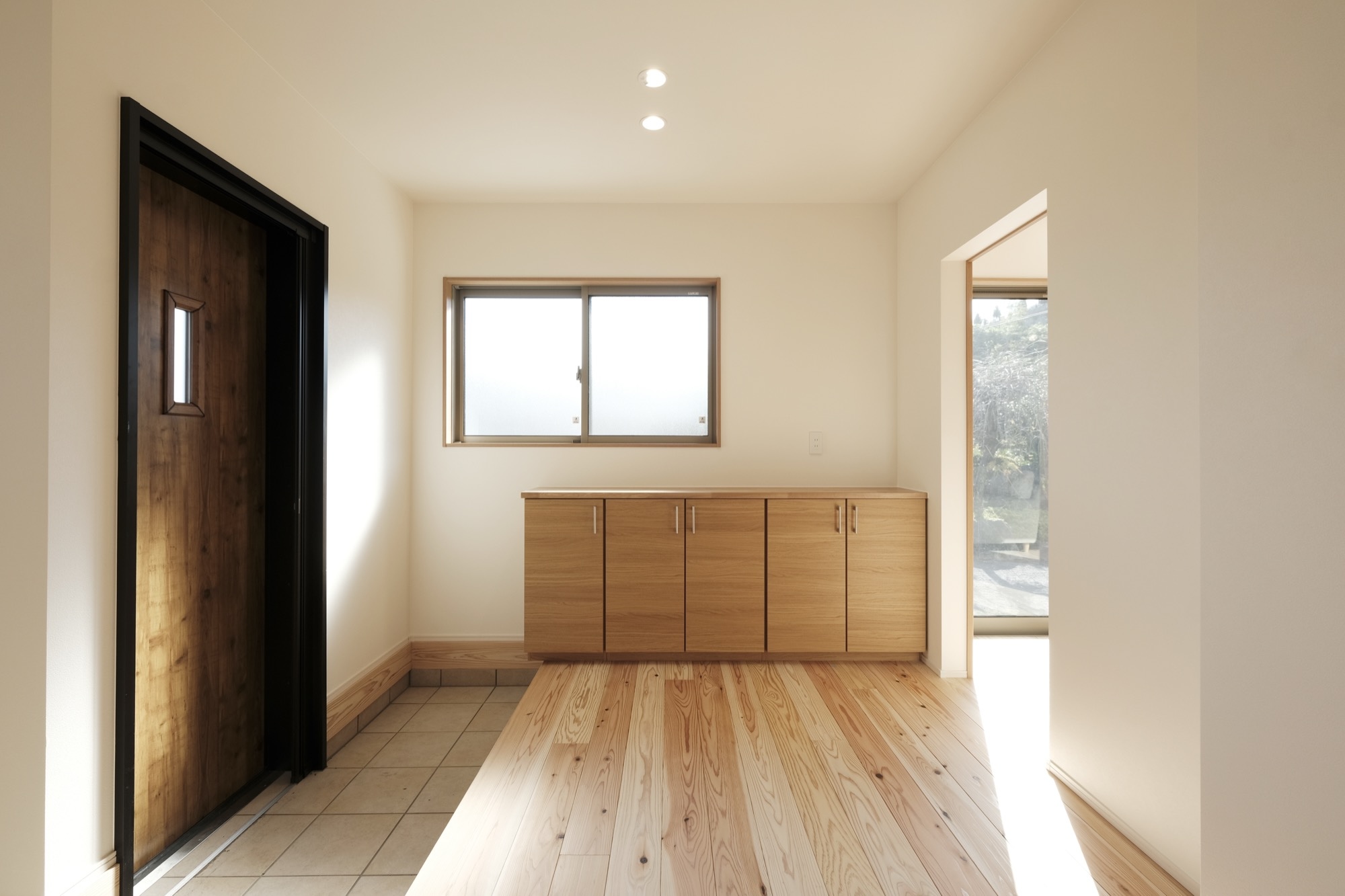 玄関に足を踏み入れた瞬間、杉材のやわらかな香りがふわりと広がります。温もりのある床材が、訪れる人をやさしく迎える空間です。