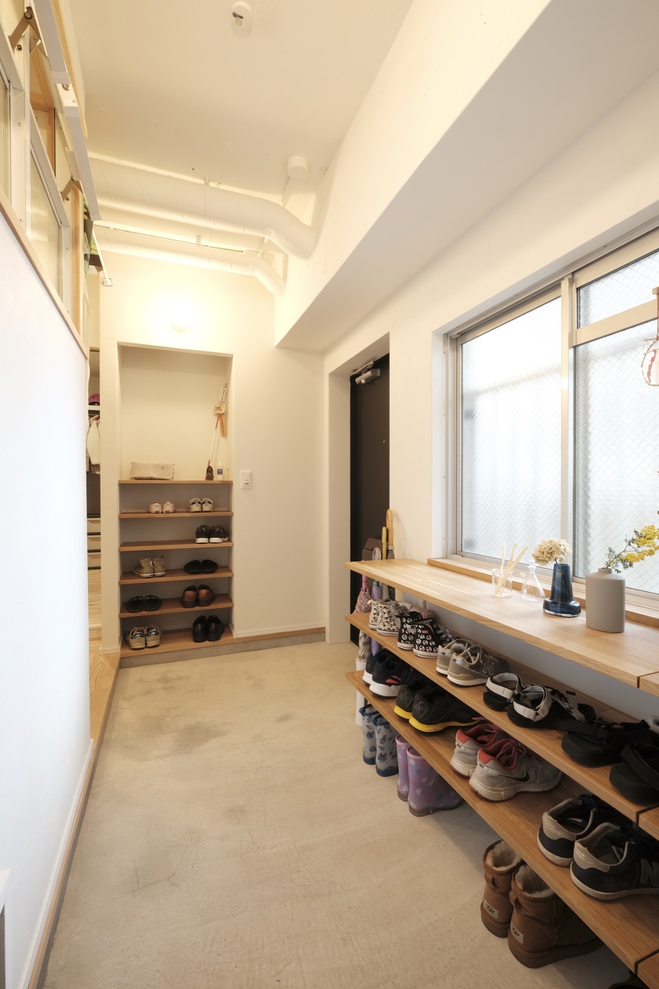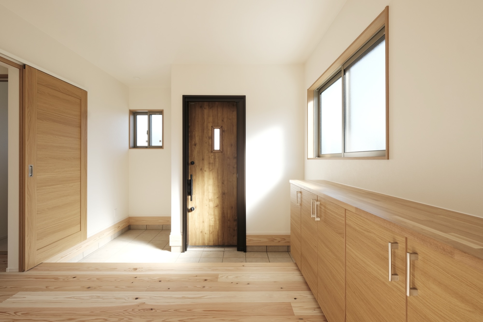 さらに、窓から差し込む自然光が空間をやわらかく包み込み、使い勝手と居心地の良さを兼ね備えた玄関になりました。
