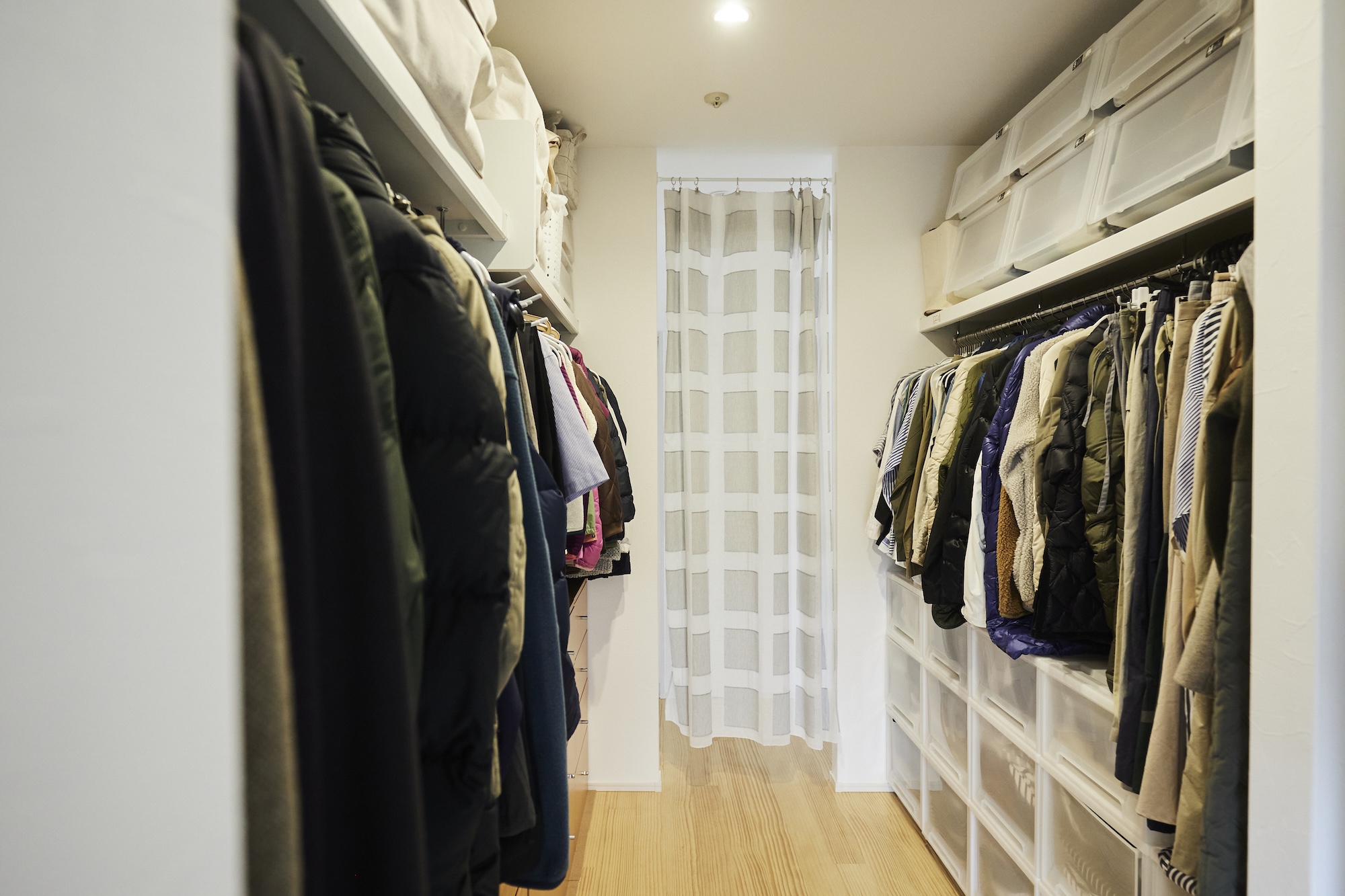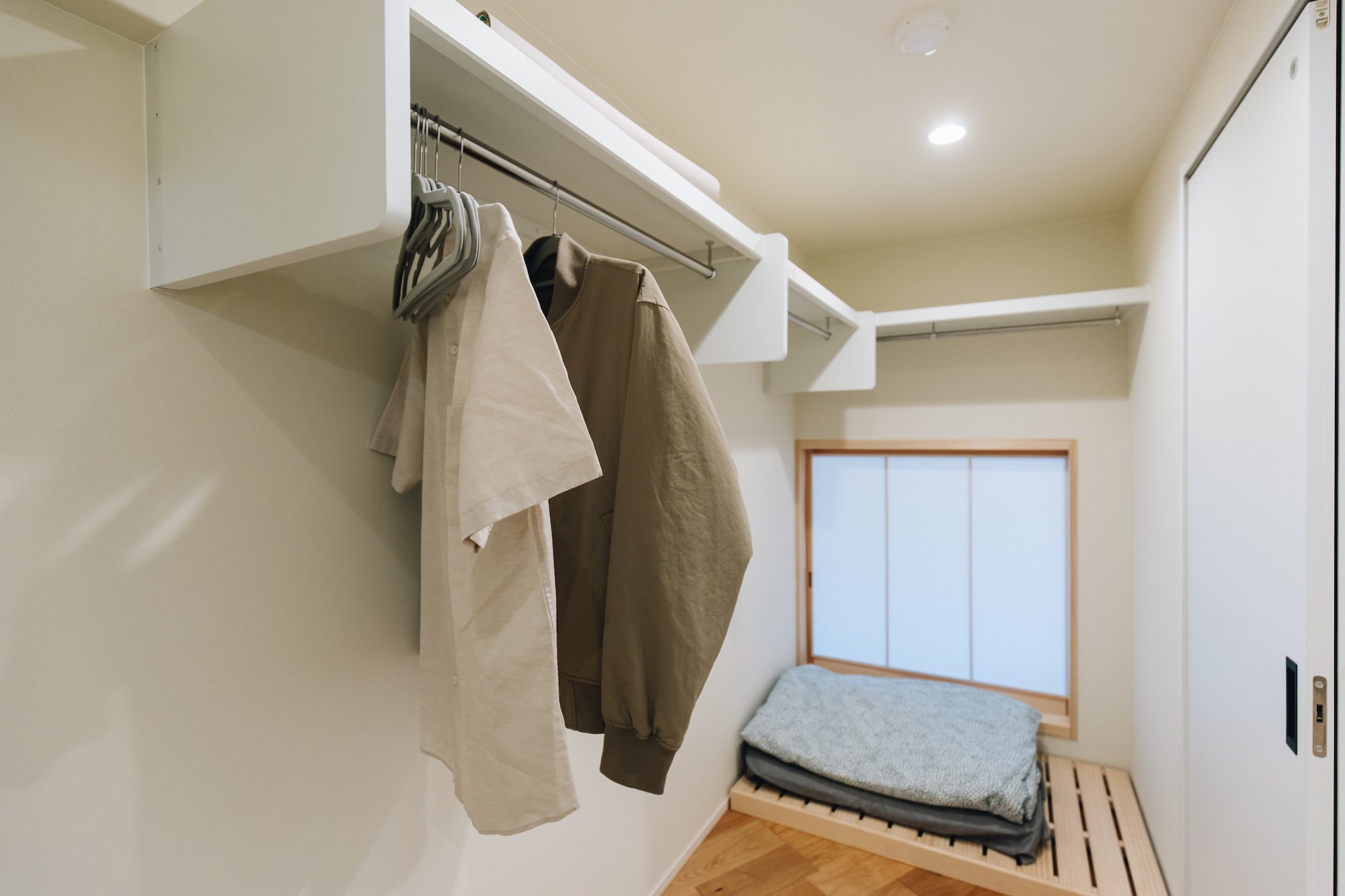 人気が続くウォークインクローゼットは、ライフスタイルに合わせて自由にカスタマイズできるのが魅力です。市販の家具や収納ケースを組み合わせて、自分好みに配置を変えられるため、使い勝手も抜群。