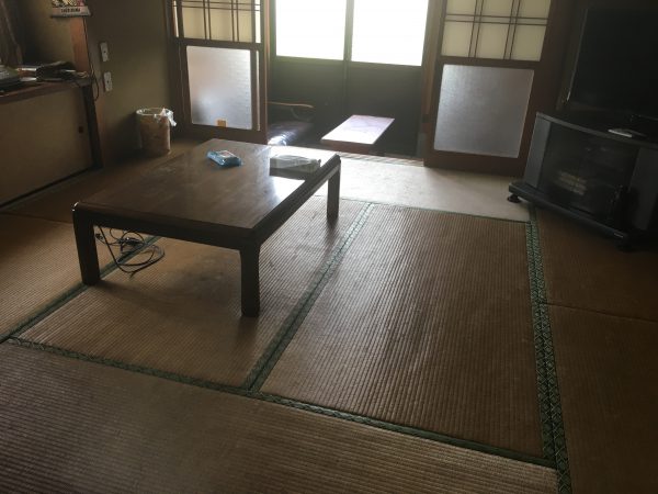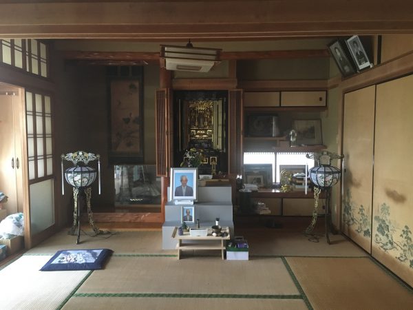 仏壇と床の間を備えた二間続きの和室は、襖間を取り除き、開放的なリビングへ。和室スペースは下がり壁で空間を分けました。