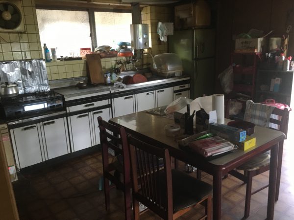 台所と隣接していた8帖のお茶の間は、車庫からすぐに入れるよう勝手口を設けたキッチン&ダイニングに。