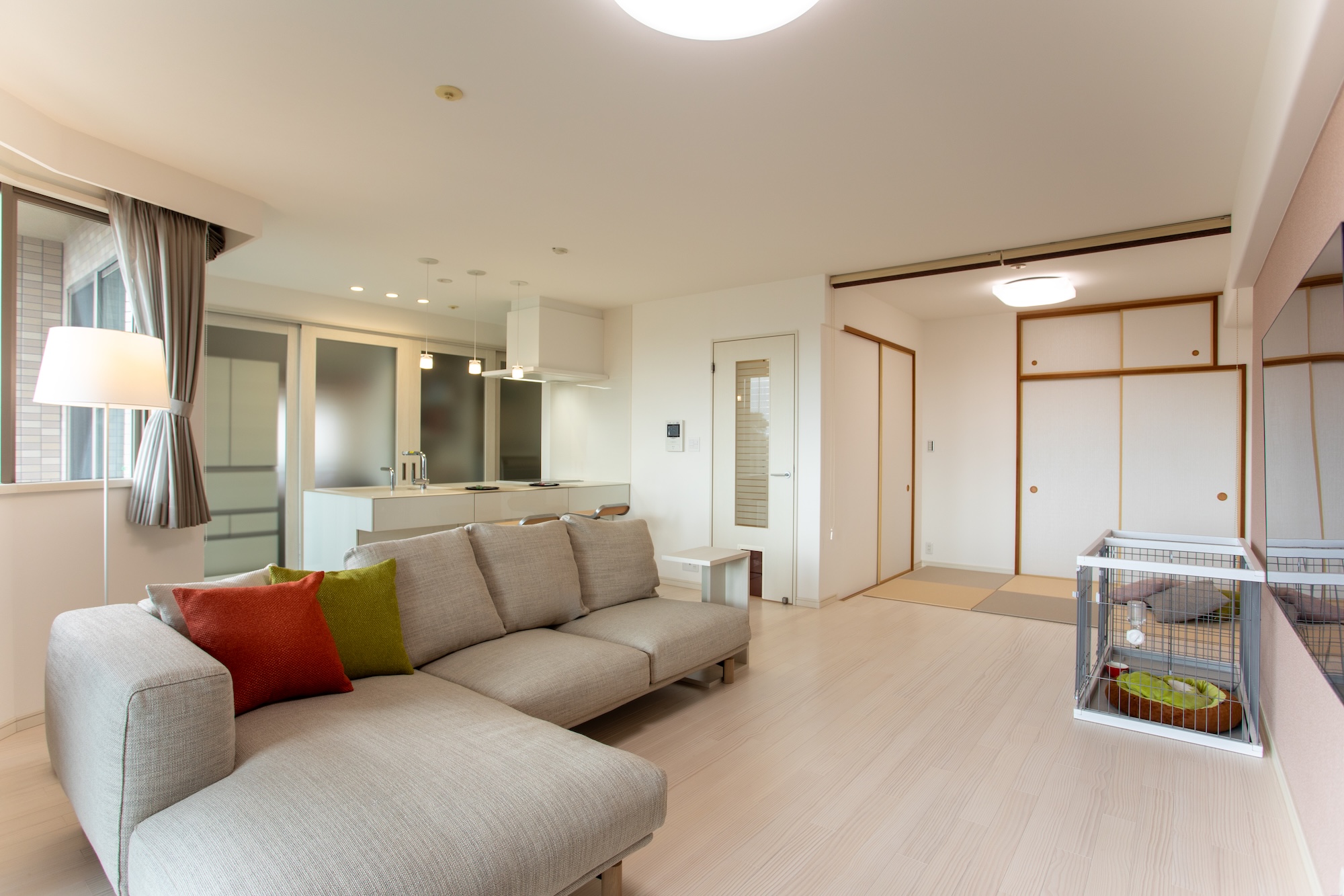 当初の目的であった洗面台や浴室といった水まわり設備も新しくなったことはもちろん、ご夫婦でゆっくりとくつろげる広々としたLDK、自転車も置ける明るく開放的な玄関、好きなものが随所に散りばめられた空間など、「好きなものを目が届くところに置いて大切に眺めて暮らしたい」というご夫婦のご要望をカタチに。今もこの先も大切な思い出に包まれながら彩り豊かな日々を楽しめる住まいが完成しました。