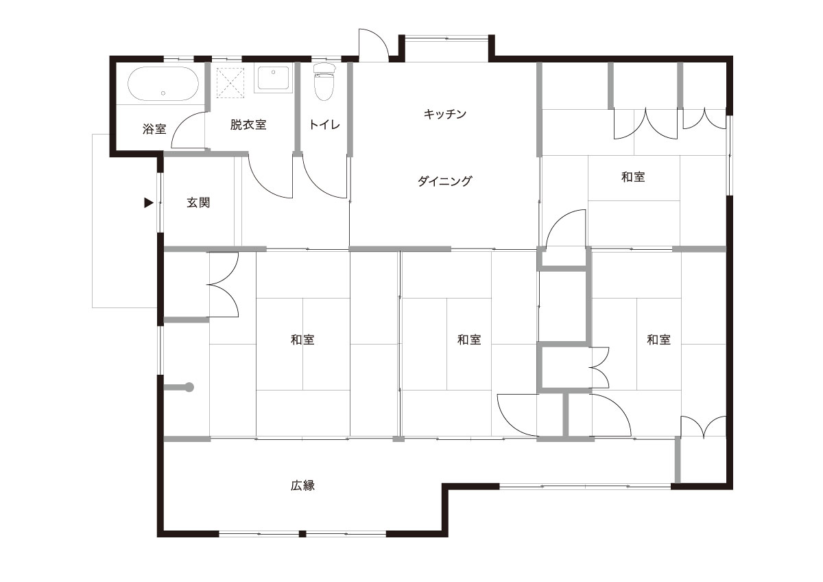 和室が多く使いにくかった間取りを一新し、家族のライフスタイルに合った広々としたLDKやウォークインクローゼットのある空間に。老朽化した住宅設備を新しくして、耐震や断熱工事も施しました。
